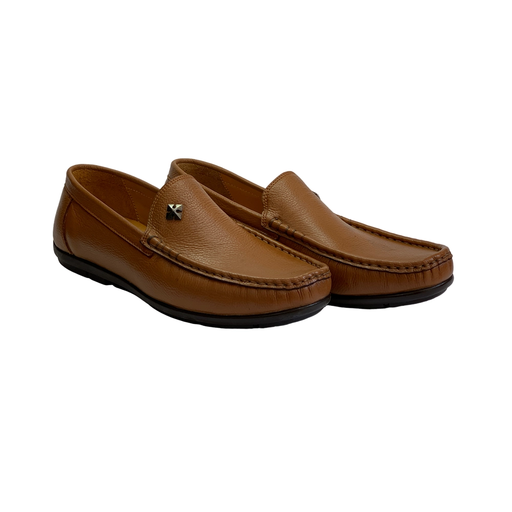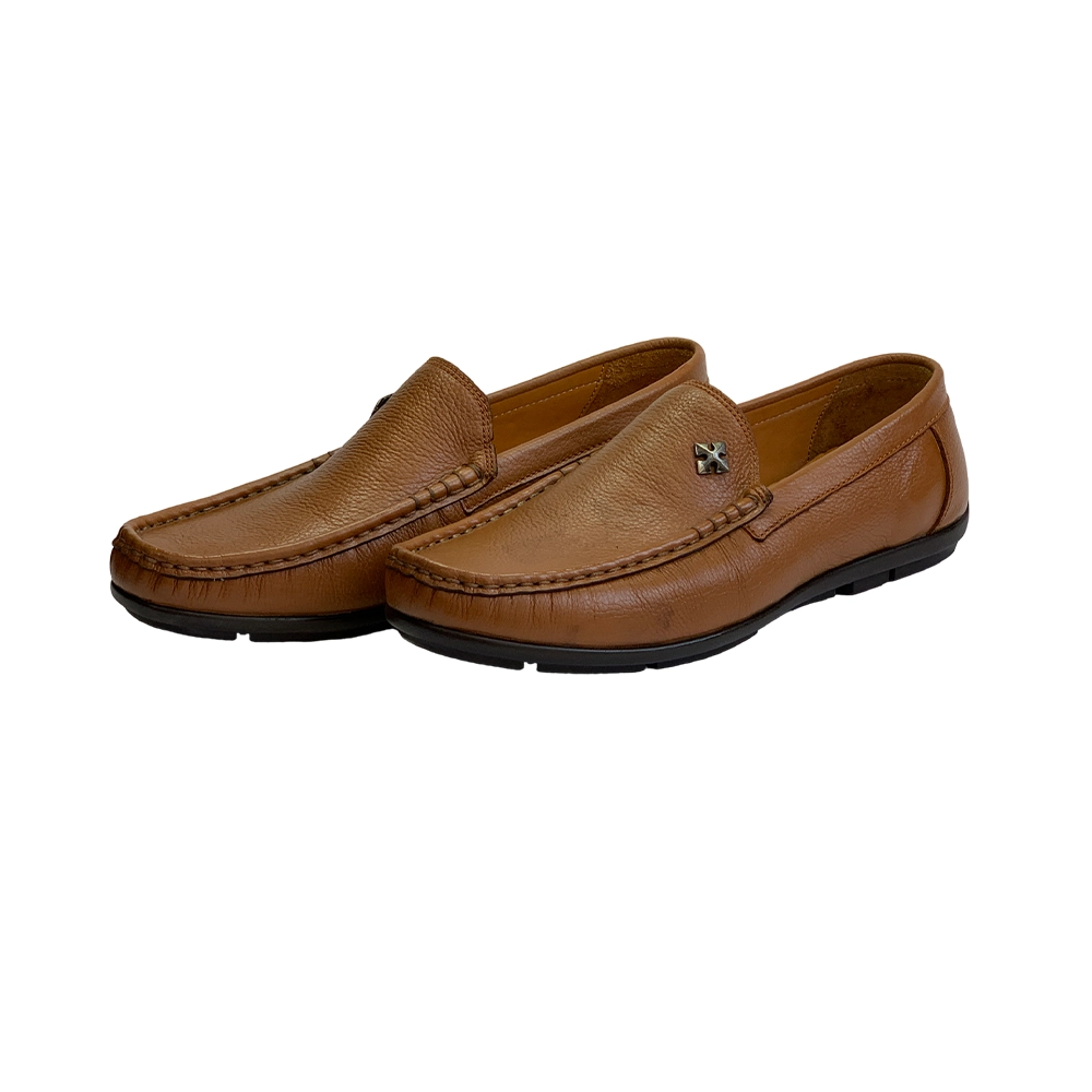 کفش مردانه کالج يراق دار روزمره تمام چرم برند 21 رنگ عسلی