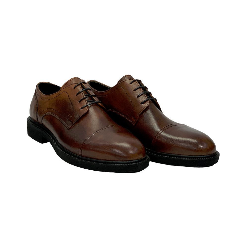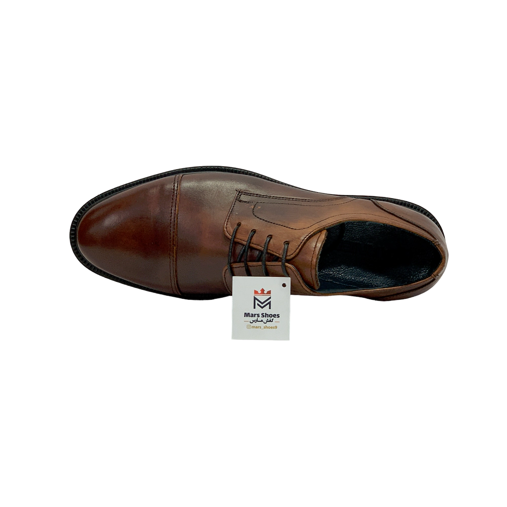 کفش مردانه مجلسی اداری بندی برت تمام چرم مدل پيترو Pietro برند گارنر Garner عسلی تيره دست رنگ