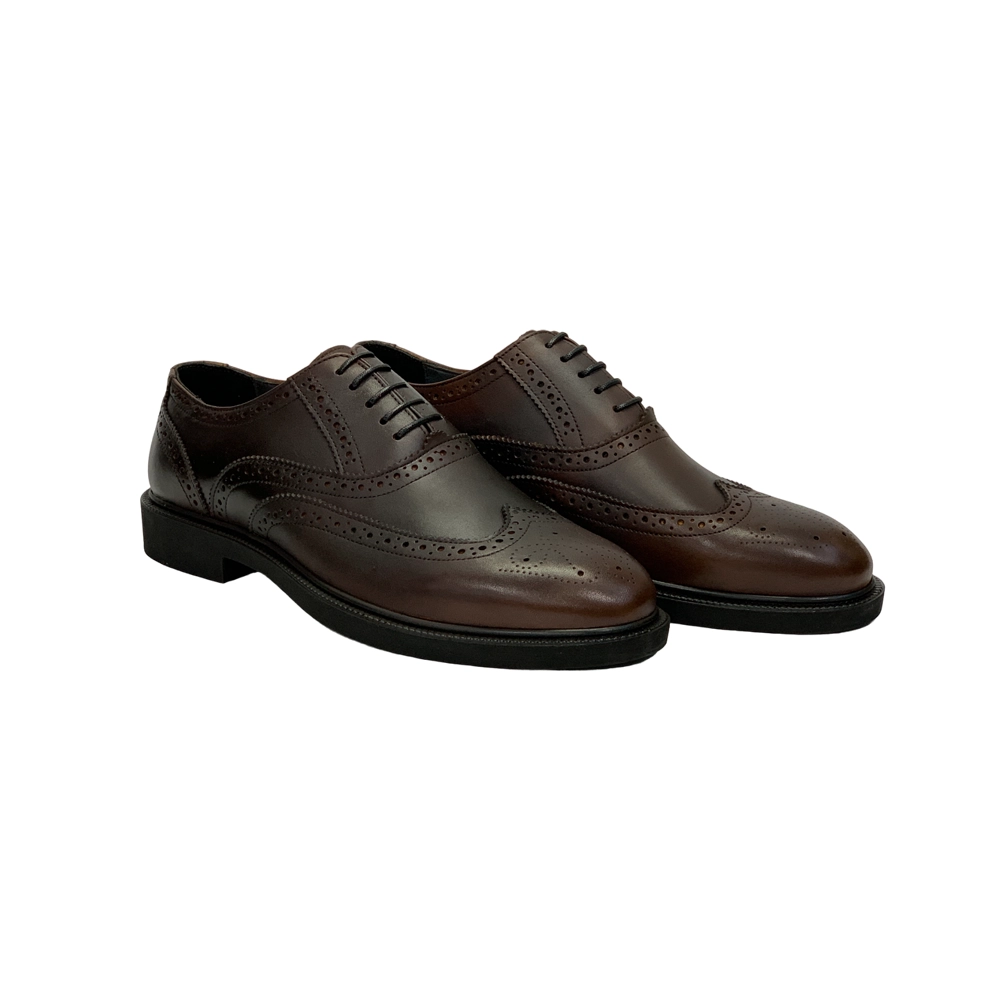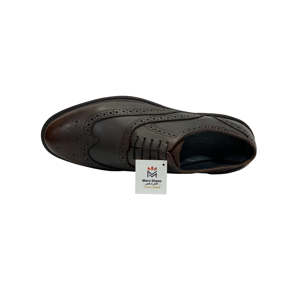 کفش مردانه مجلسی هشترک بندی تمام چرم مدل پيترو Pietro برند گارنر Garner رنگ عسلی تيره دست رنگ