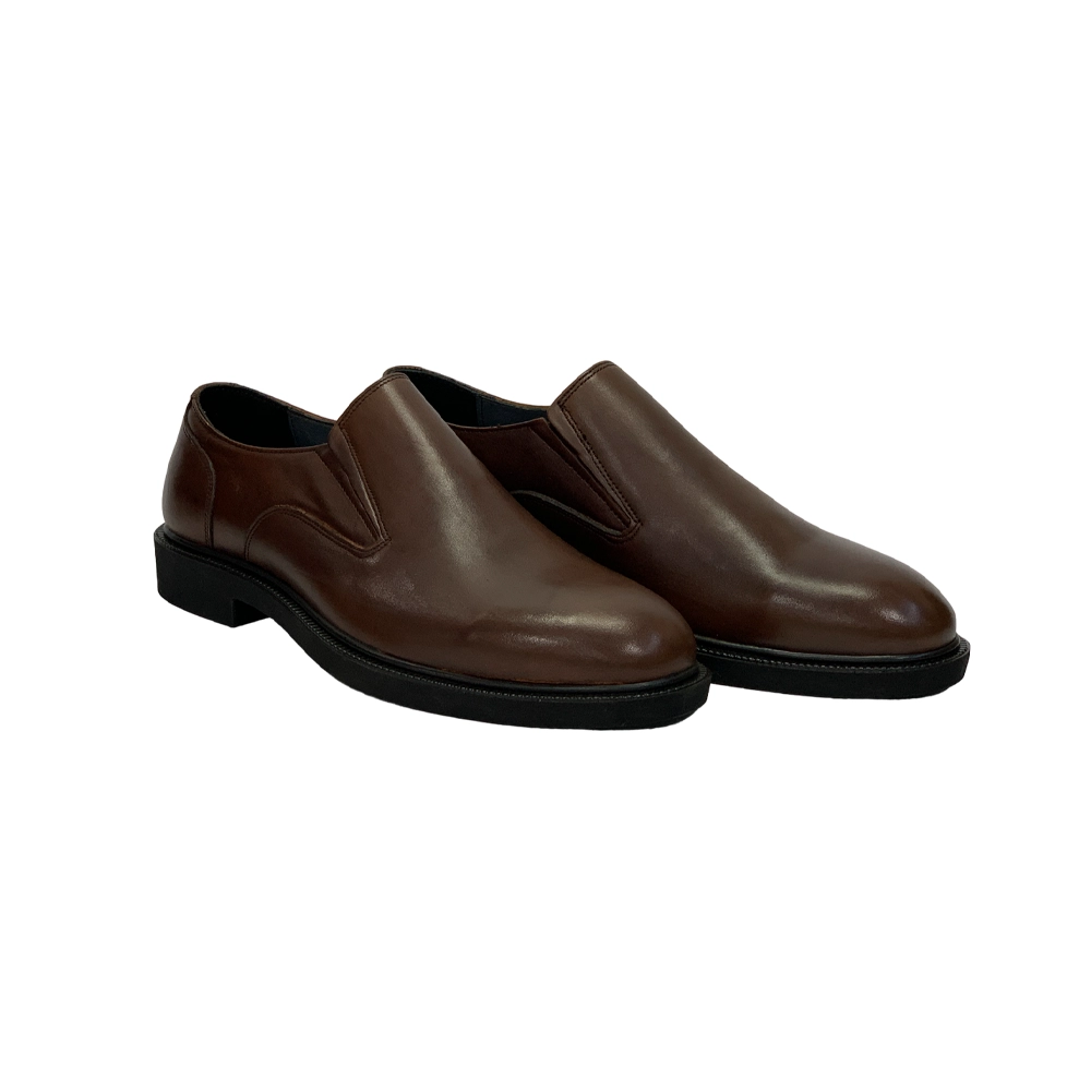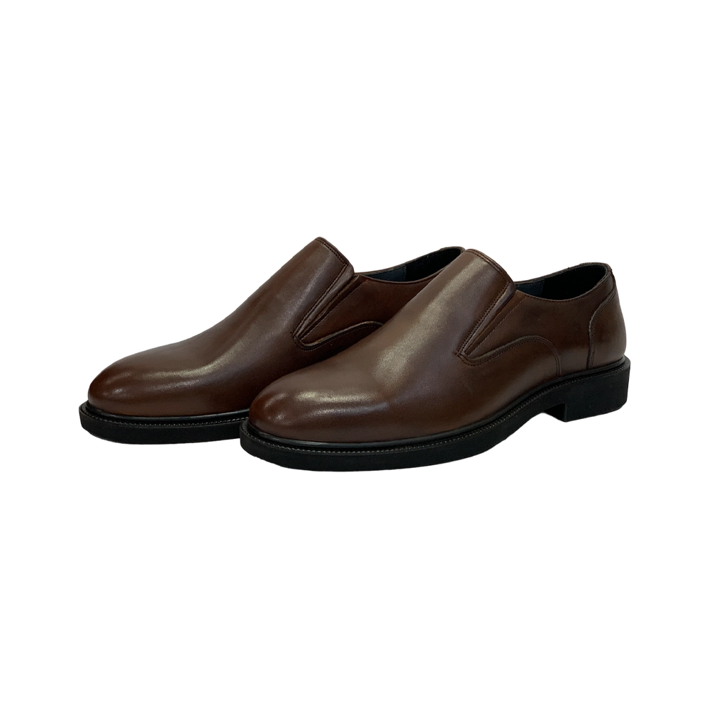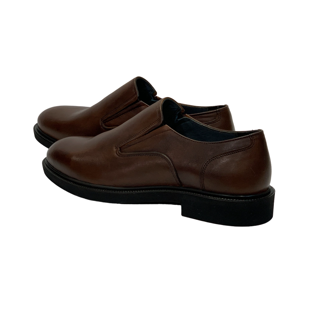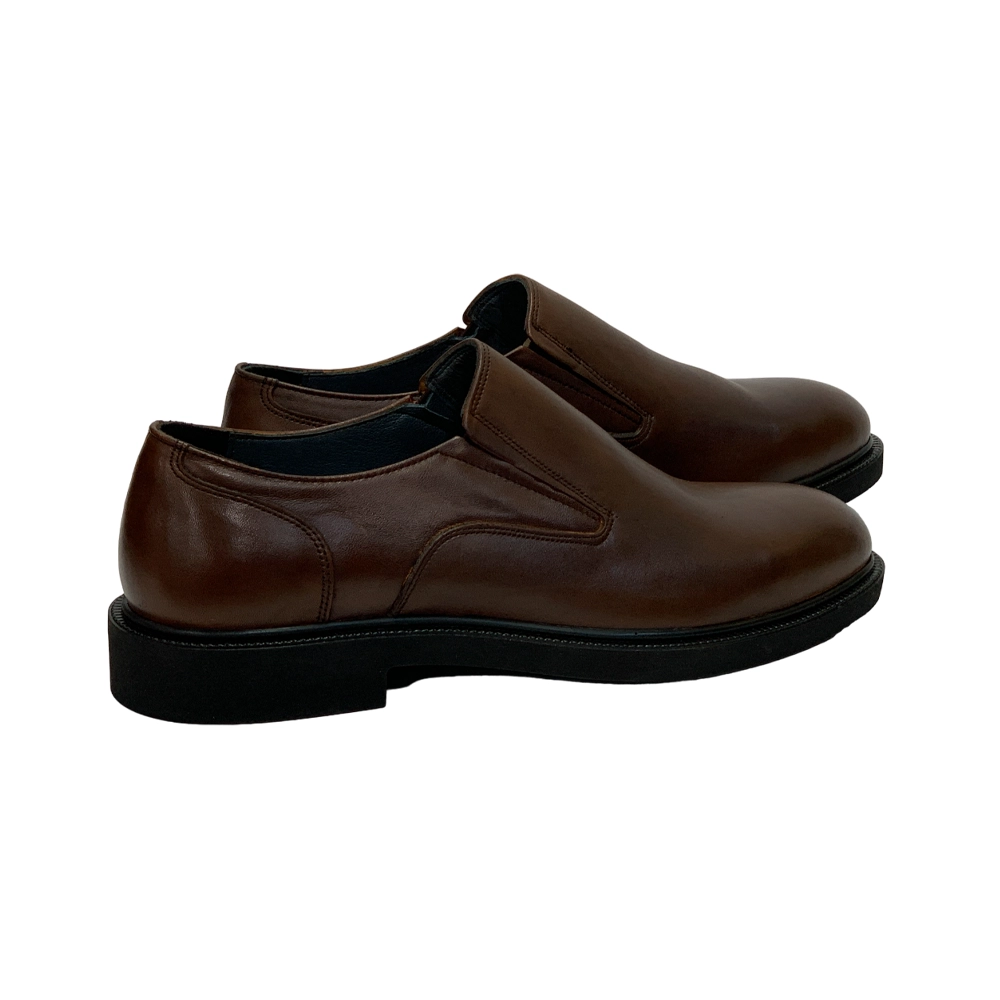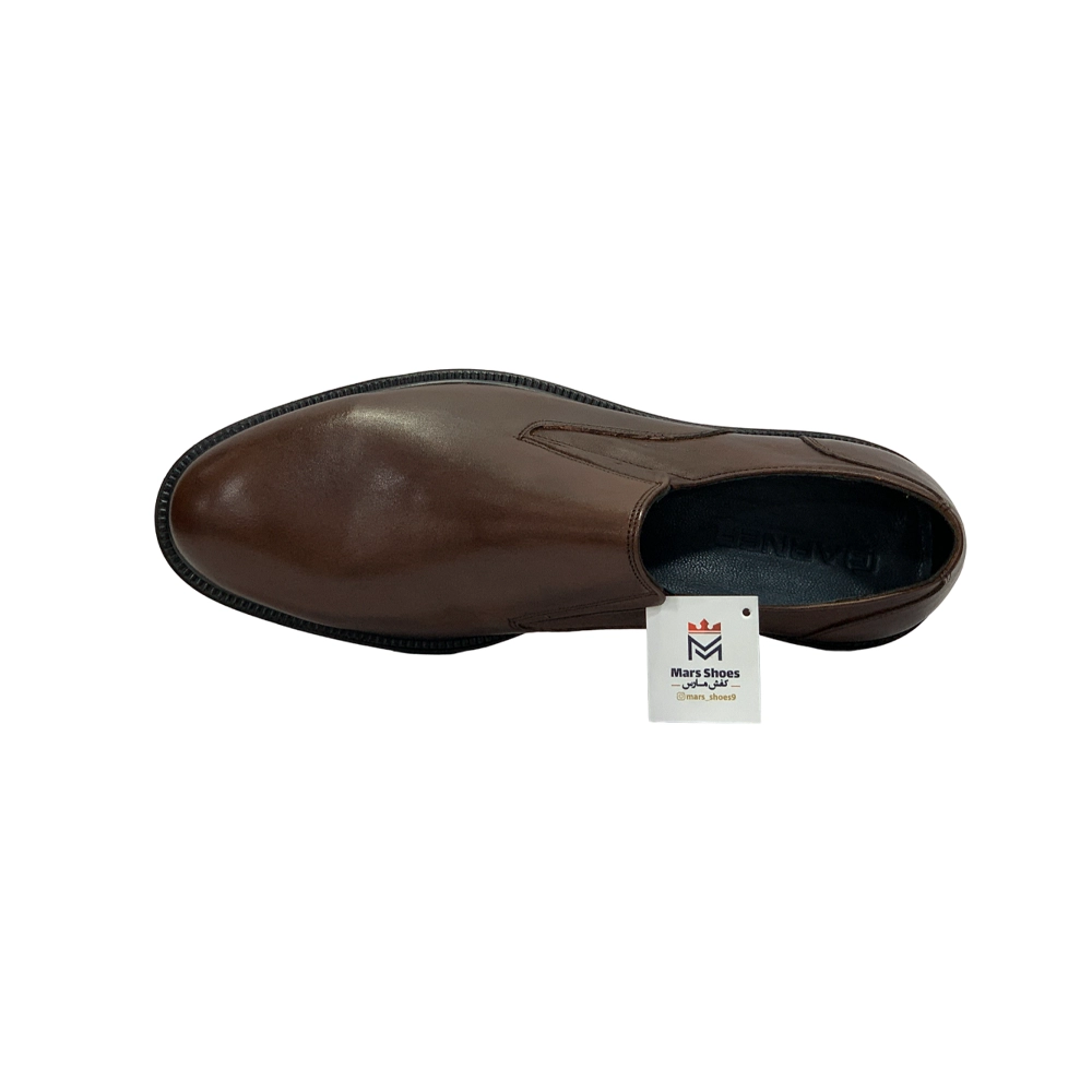 کفش مردانه مجلسی اداری بی بند رو ساده تمام چرم مدل پيترو Pietro برند گارنر Garner رنگ عسلی تيره دست رنگ