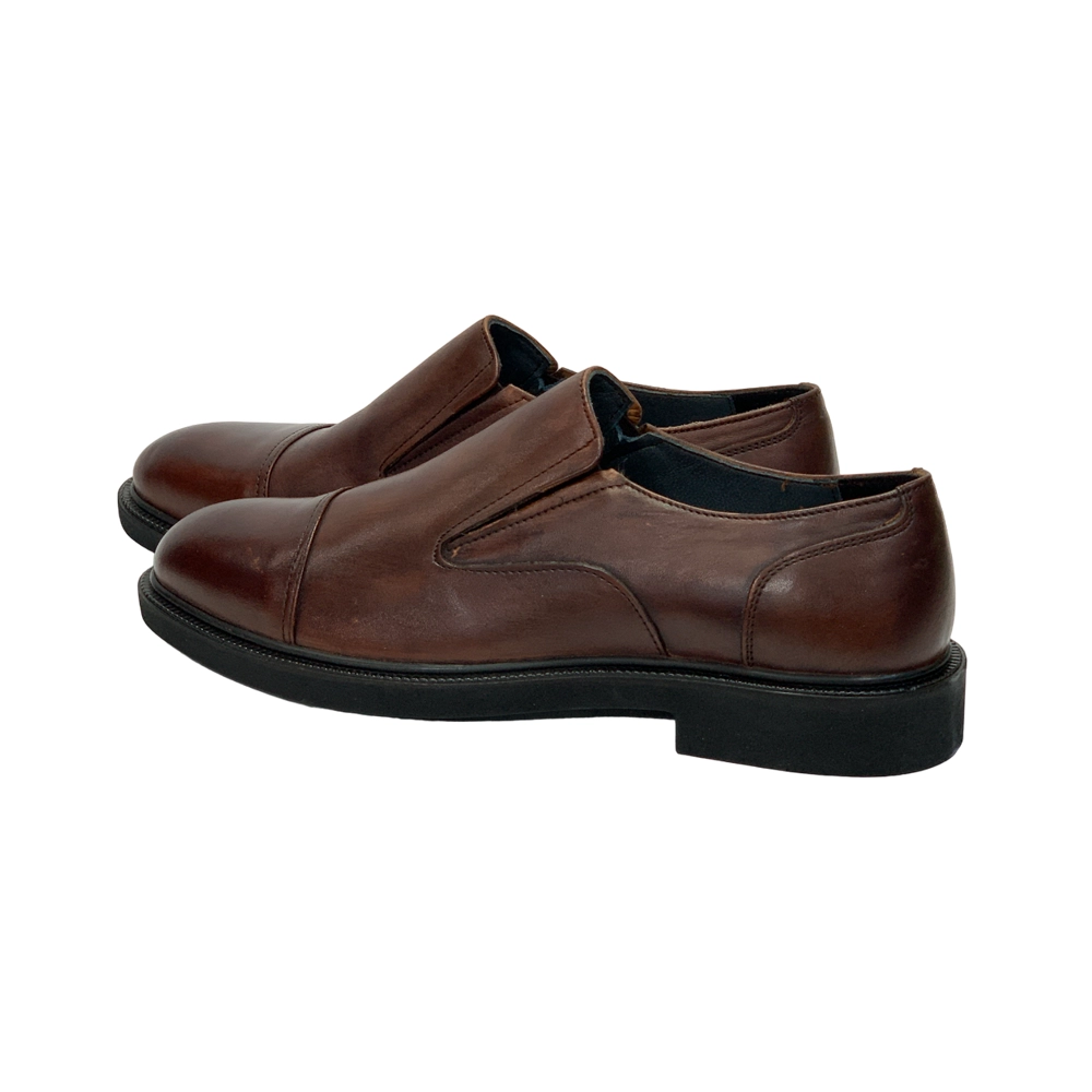 کفش مردانه مجلسی بی بند برت دار دست رنگ تمام چرم مدل پيترو Pietro برند گارنر Garner رنگ عسلی تيره