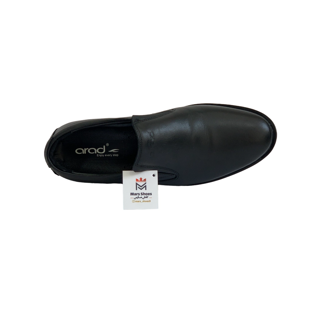 کفش مردانه طبی بی بند تمام چرم مدل يومو 2 Yomo2 برند آراد Arad رنگ مشکی