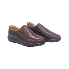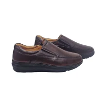 کفش مردانه روزمره طبی بی بند تمام چرم مدل فلش Flash برند گارنر Garner رنگ عسلی دست رنگ