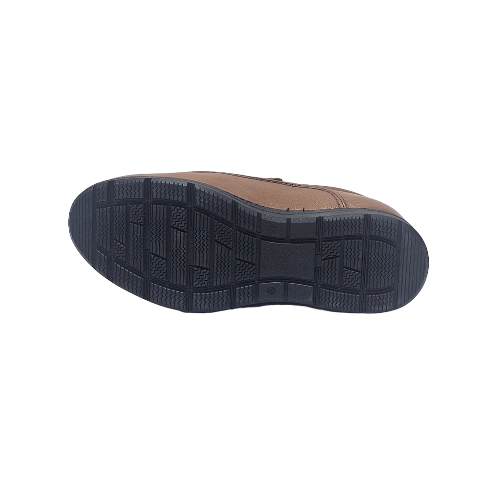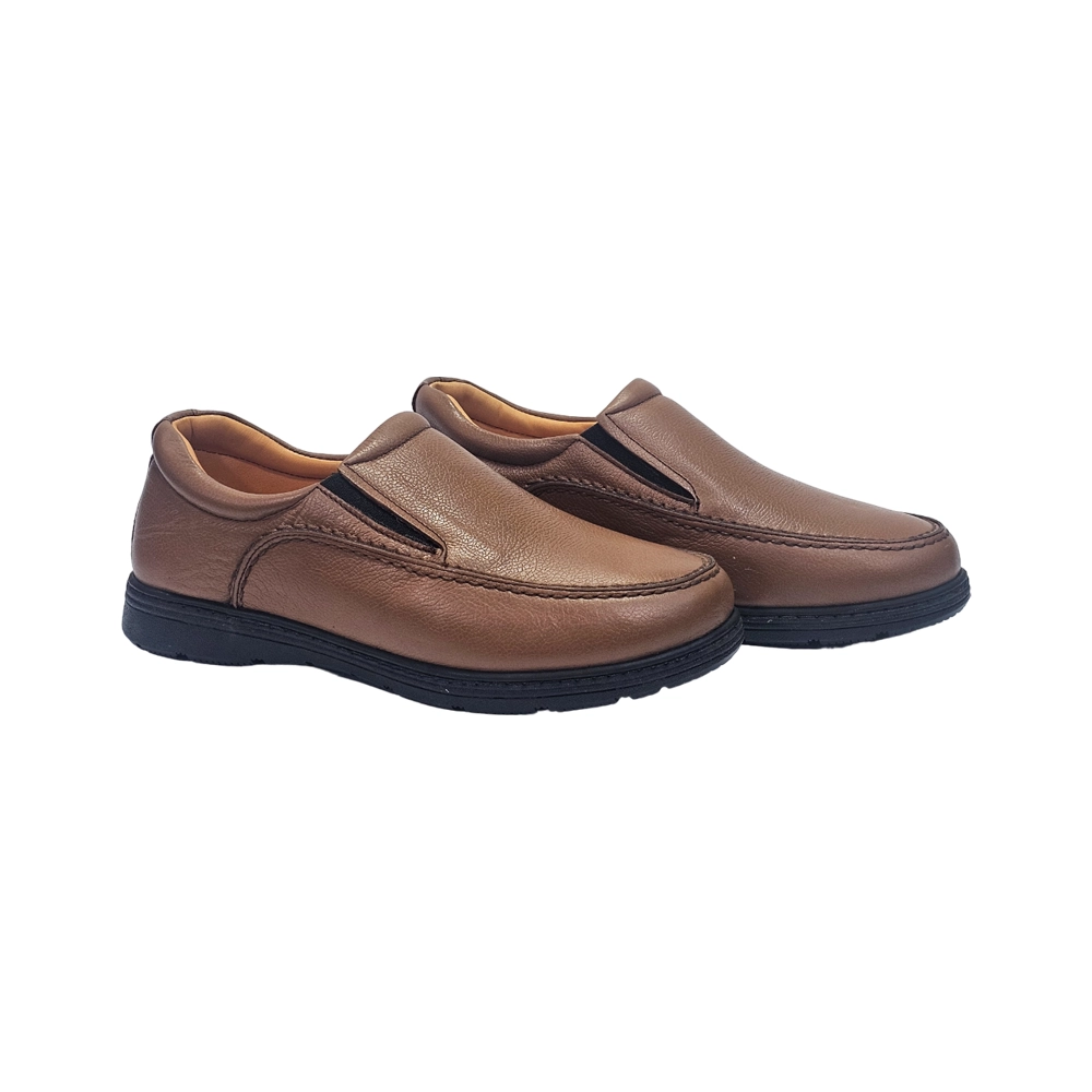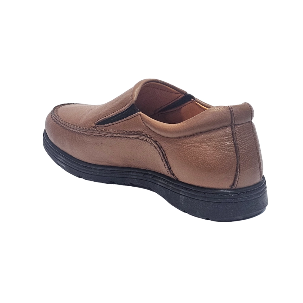 کفش مردانه روزمره طبی بی بند تمام چرم مدل فری Free برند گارنر Garner رنگ عسلی