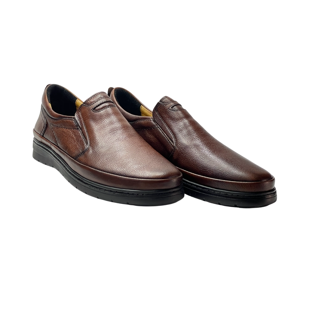 کفش مردانه طبی اداری بی بند تمام چرم مدل استپ Stap برند گارنر Garner رنگ عسلی تيره