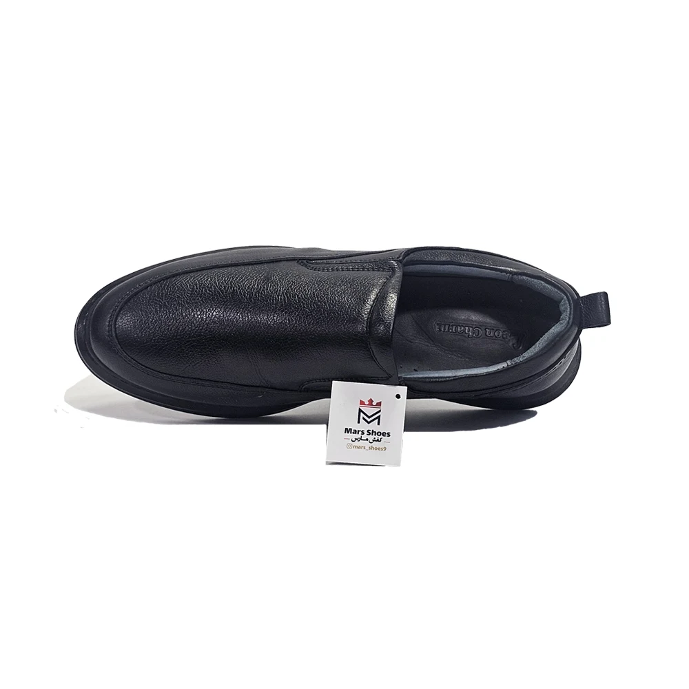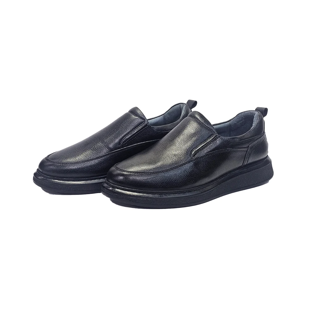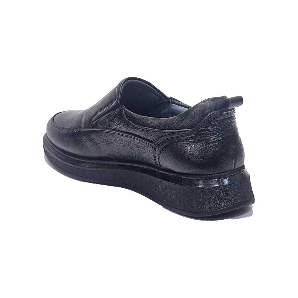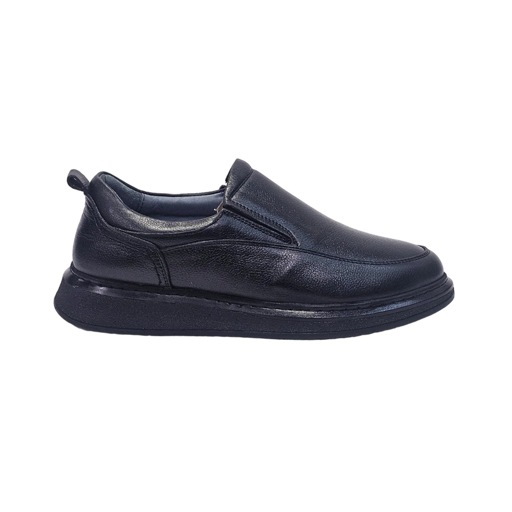 کفش مردانه روزمره طبی بی بند تمام چرم مدل ول well برند گارنر Garner رنگ مشکی