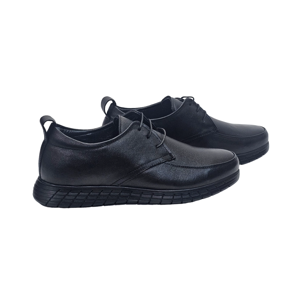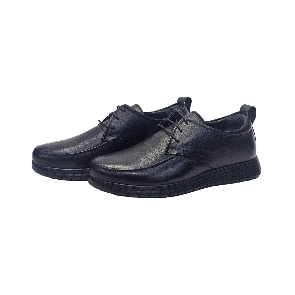 کفش مردانه روزمره طبی بندی تمام چرم مدل ونیز Veniz برند جی سی JC رنگ مشکی