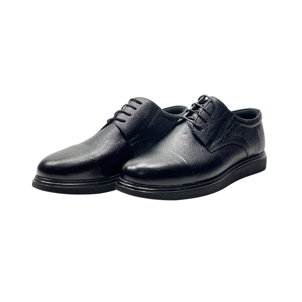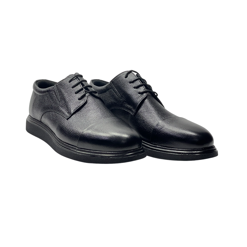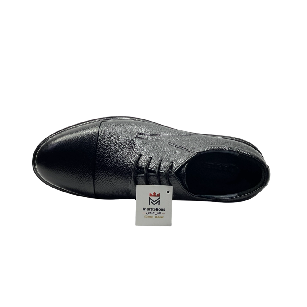 کفش مردانه طبی روزمره بندی برت دار تمام چرم مدل مونت Mounth برند مارس Mars رنگ مشکی ميلينگ