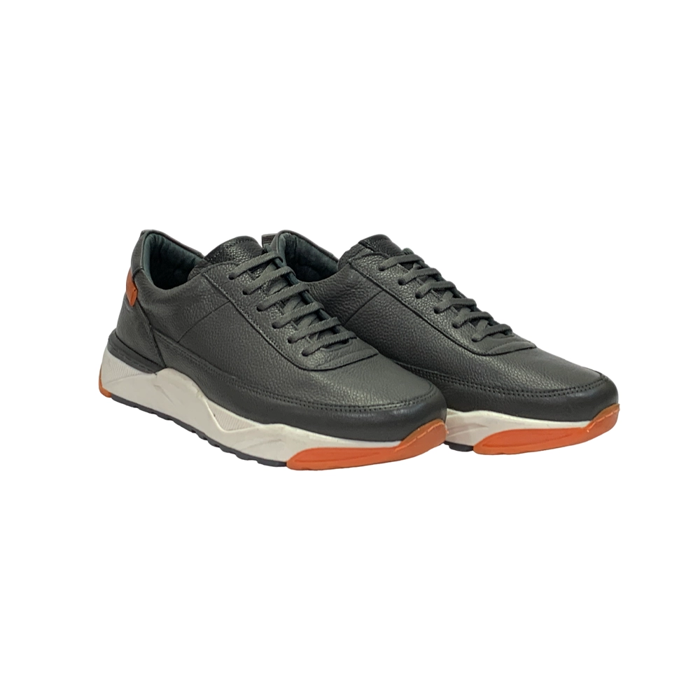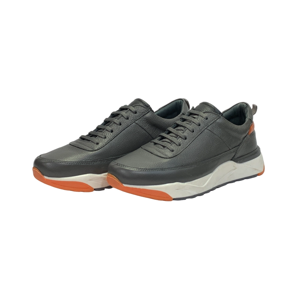 کفش مردانه روزمره اسپرت تمام چرم مدل هارپر Harper برند گارنر Garner رنگ طوسی خرج نارنجی
