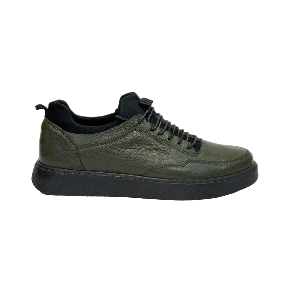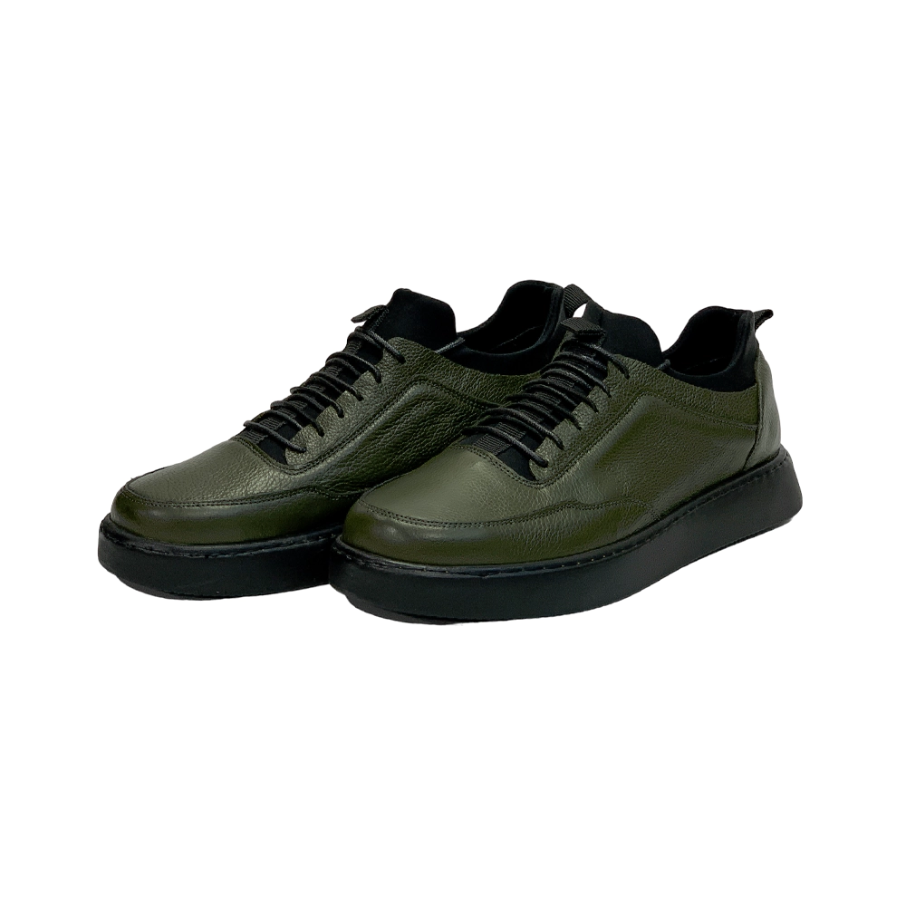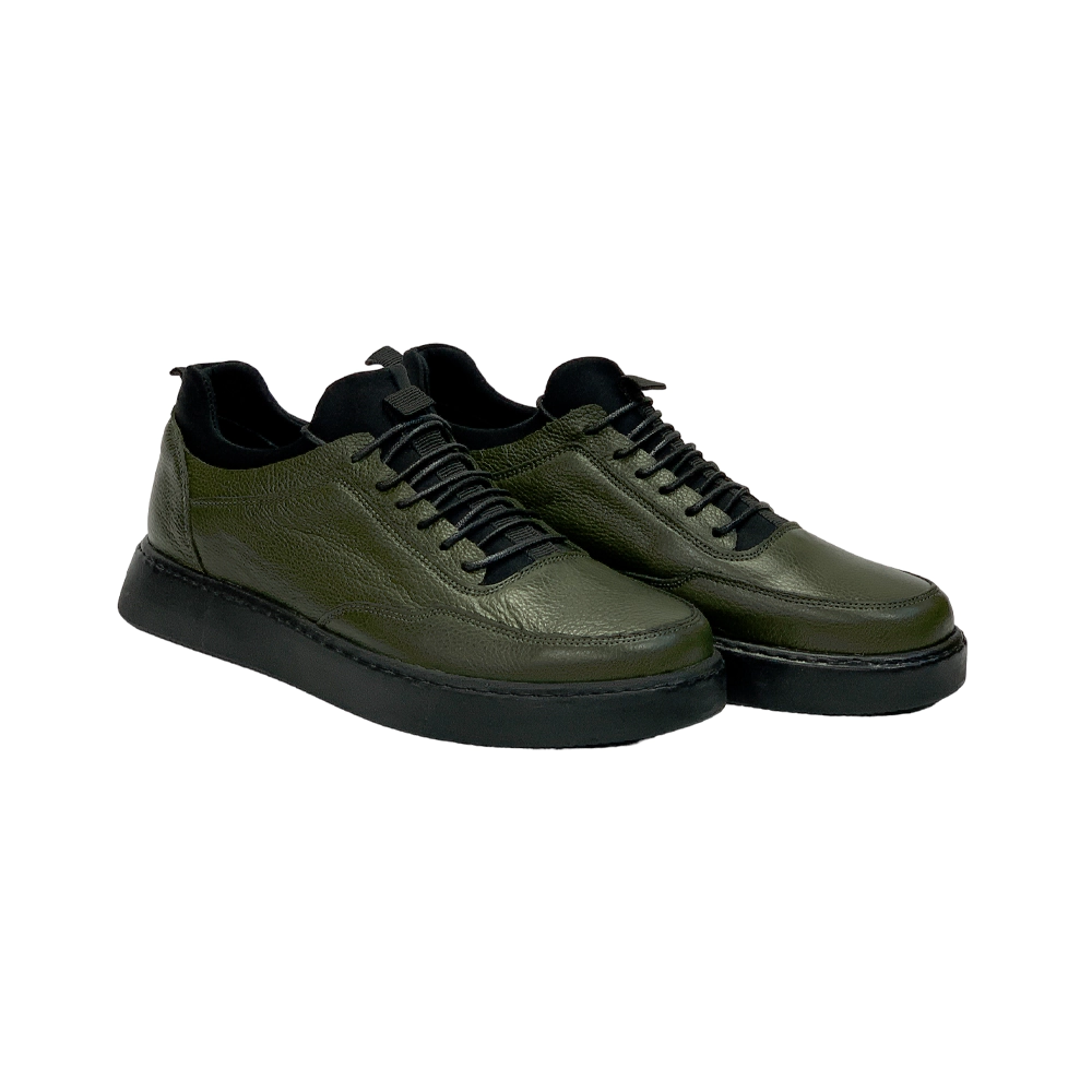کفش مردانه روزمره اسپرت جورابی تمام چرم مدل پلانو Plano برند گارنر Garner رنگ يشمی