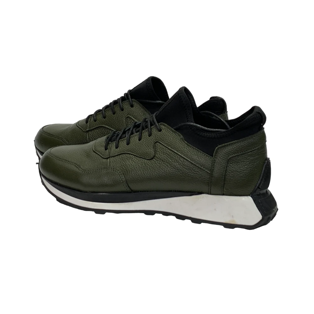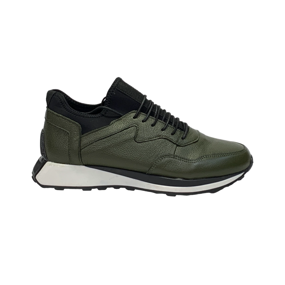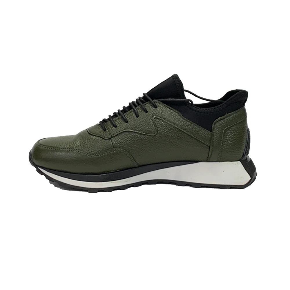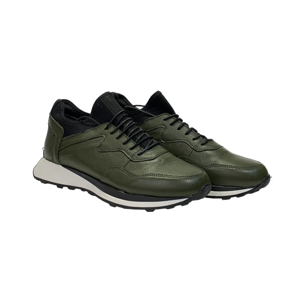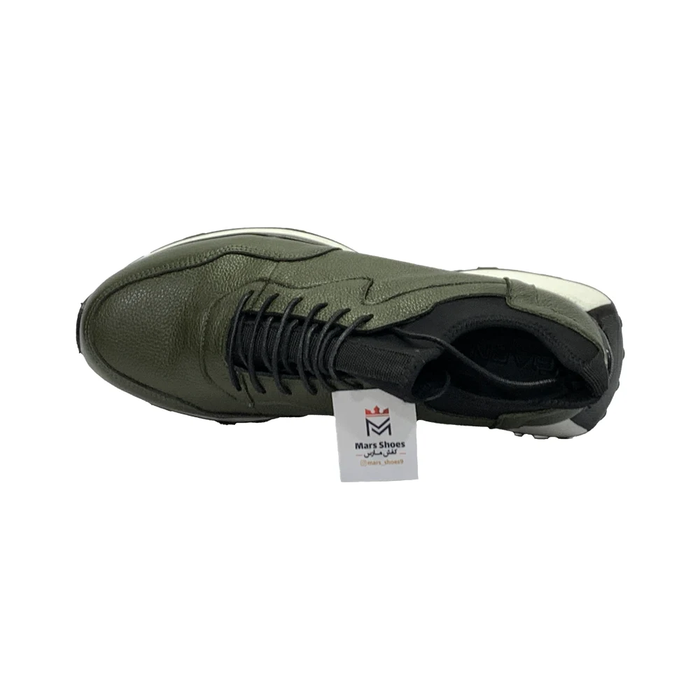 کفش مردانه روزمره اسپرت جورابی تمام چرم مدل تاردلی Tardelli برند گارنر Garner رنگ يشمی