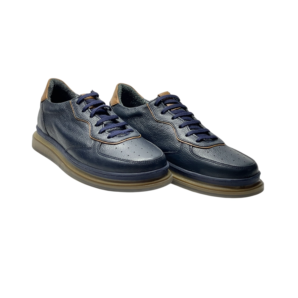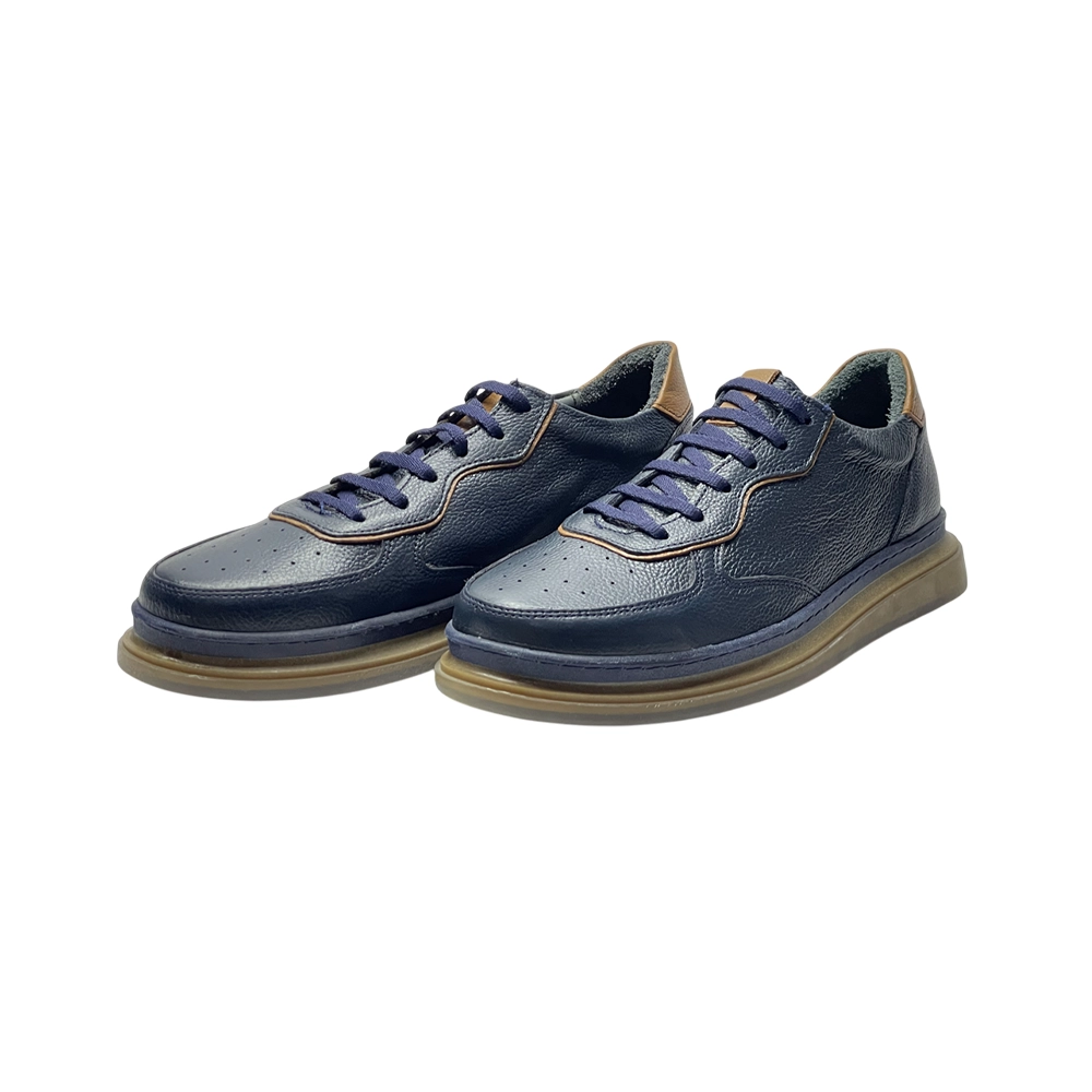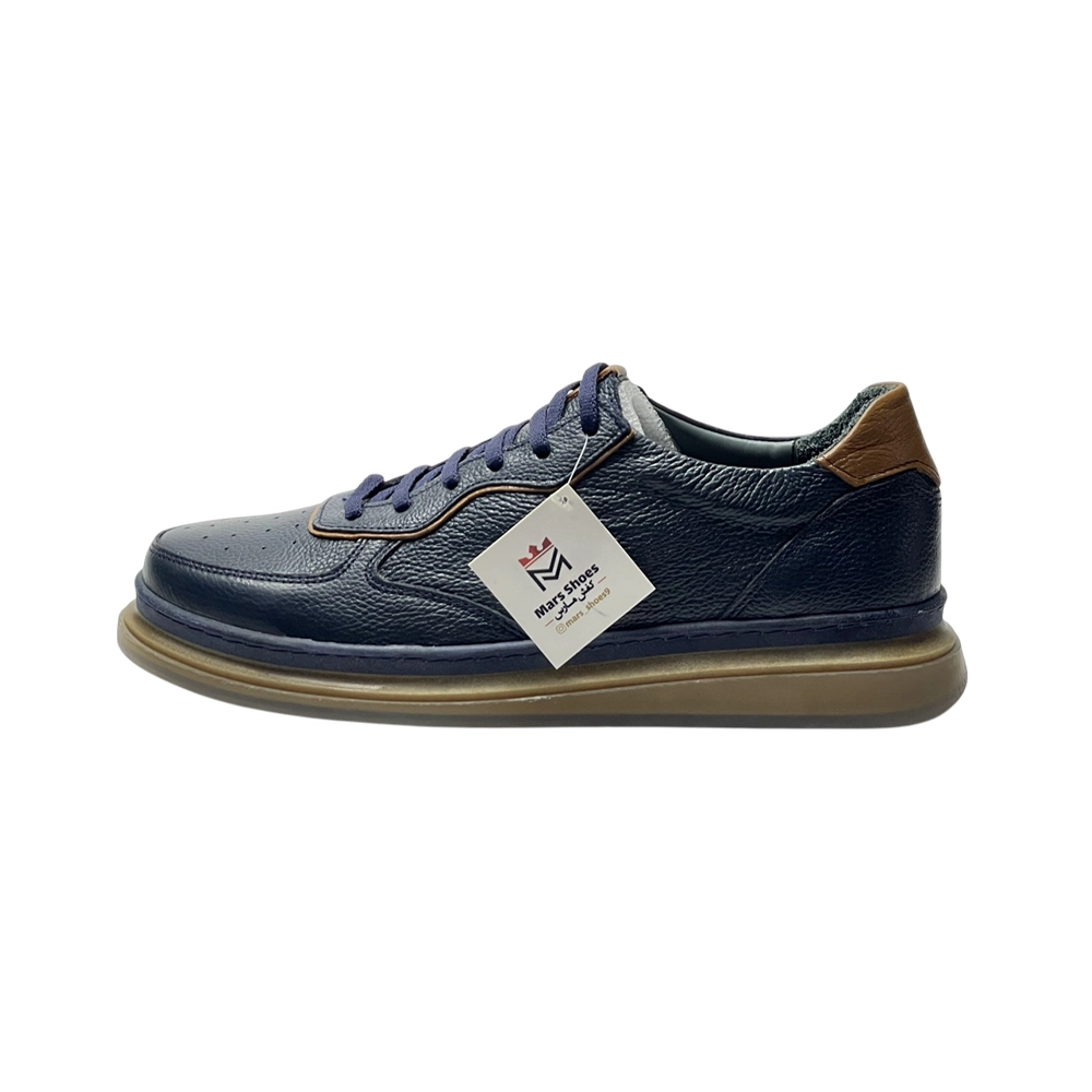 کفش مردانه اسپرت تمام چرم مدل تاسوتی Tasotti برند گارنر Garner رنگ سرمه ای زیره عسلی