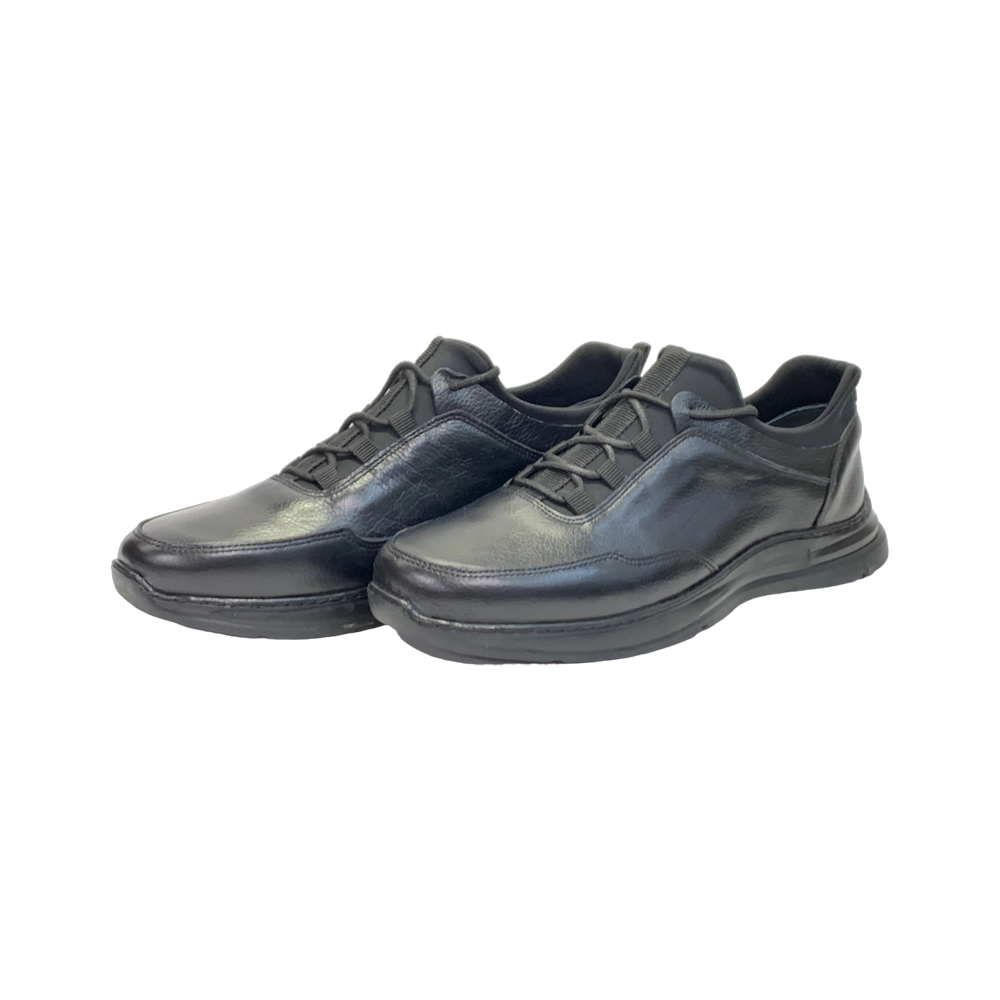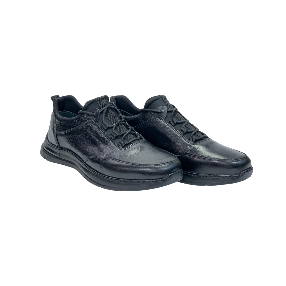 کفش مردانه روزمره اسپرت جورابی تمام چرم مدل تورنادو Tornado برند گارنر Garner رنگ مشکی