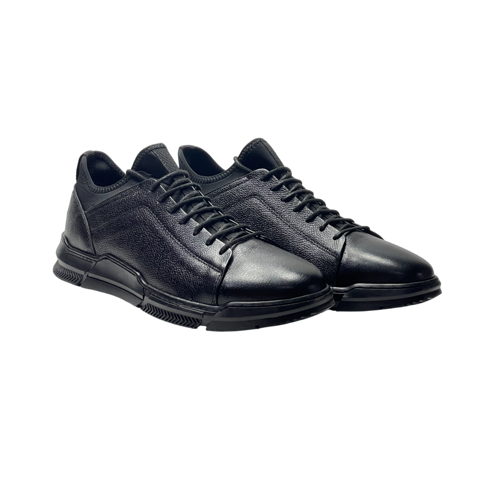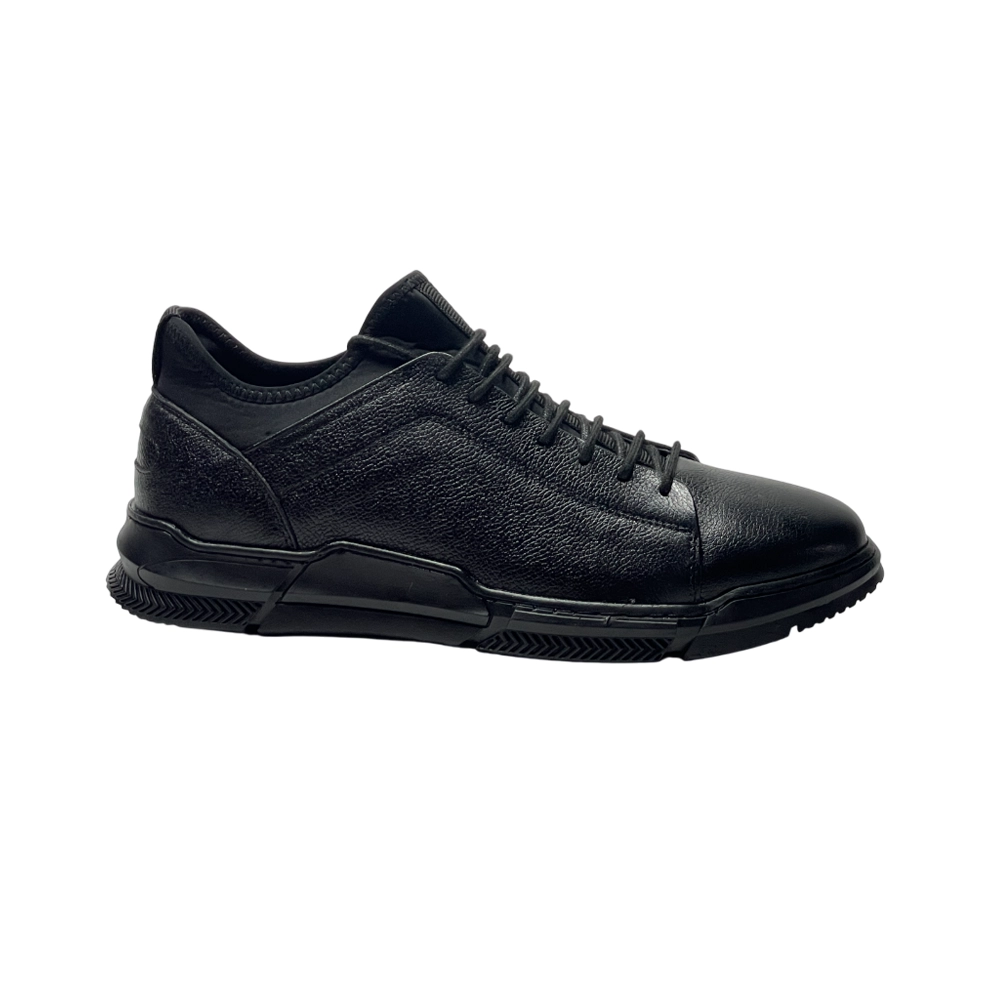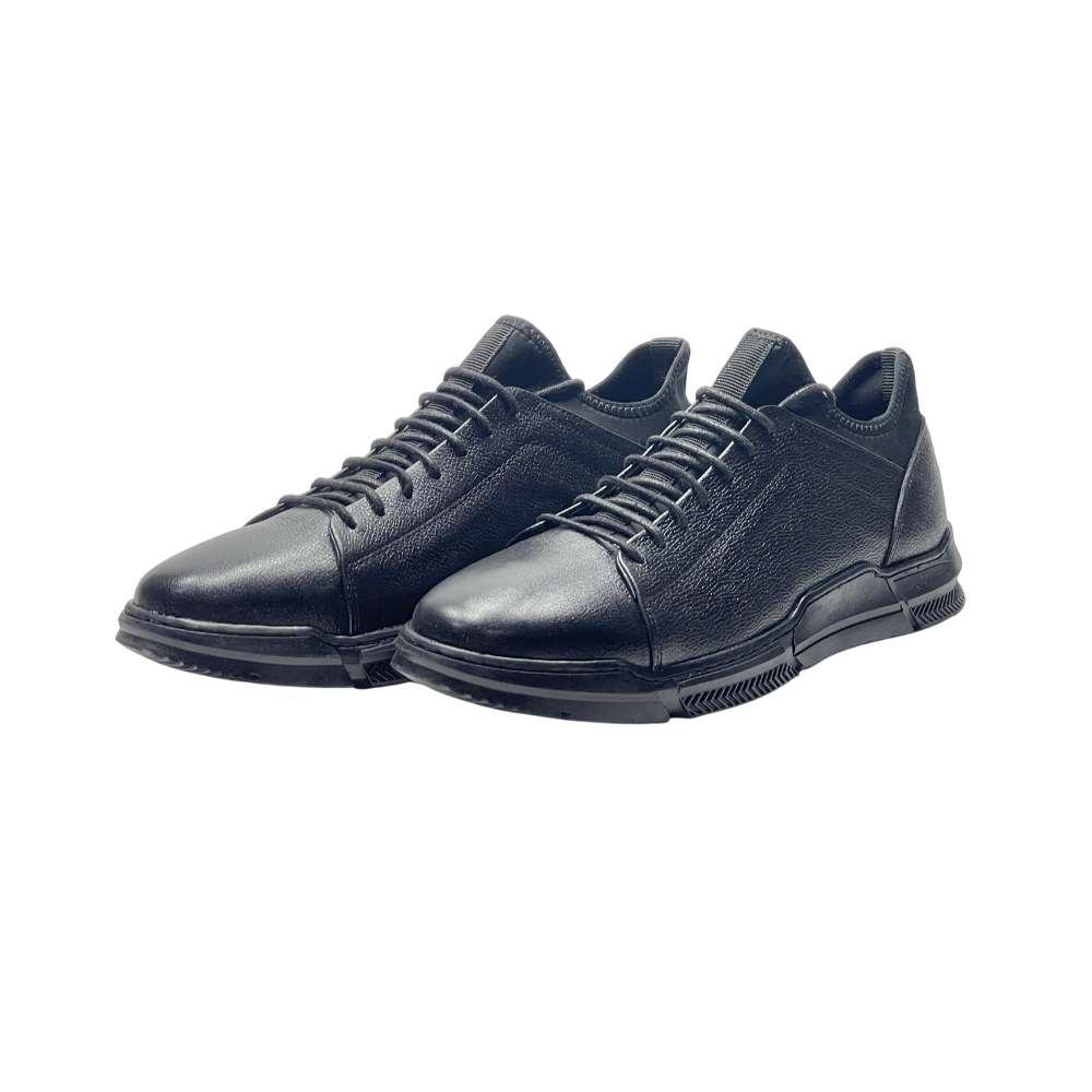 کفش مردانه اسپرت جورابی روزمره تمام چرم مدل ويلسون Wilson برند گارنر Garner رنگ مشکی