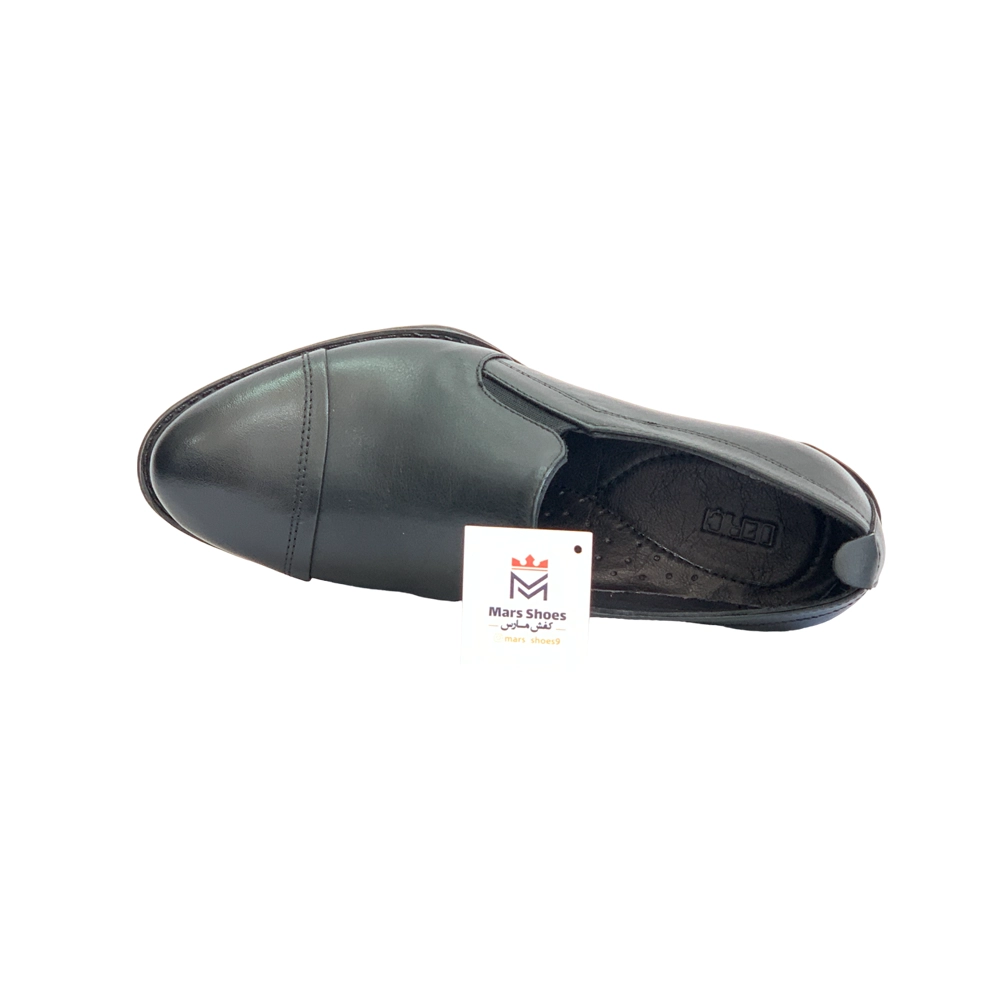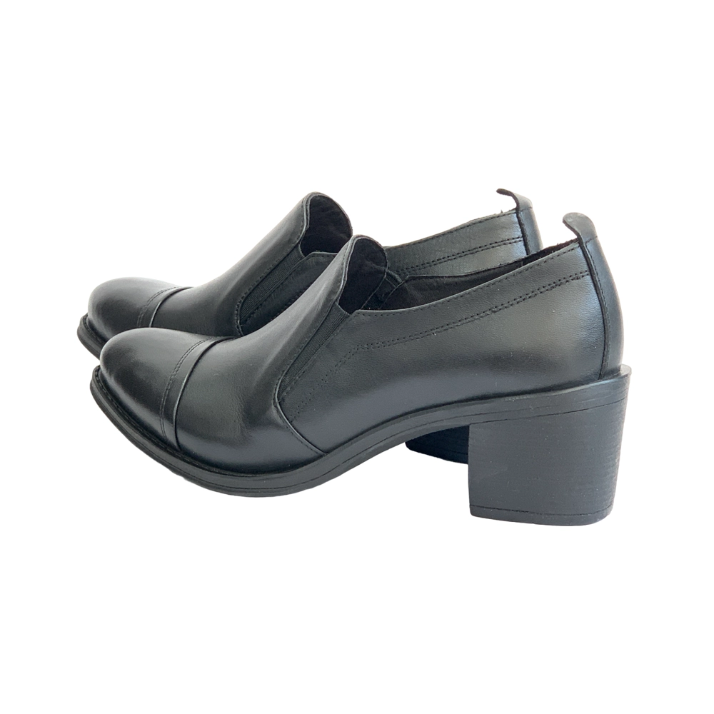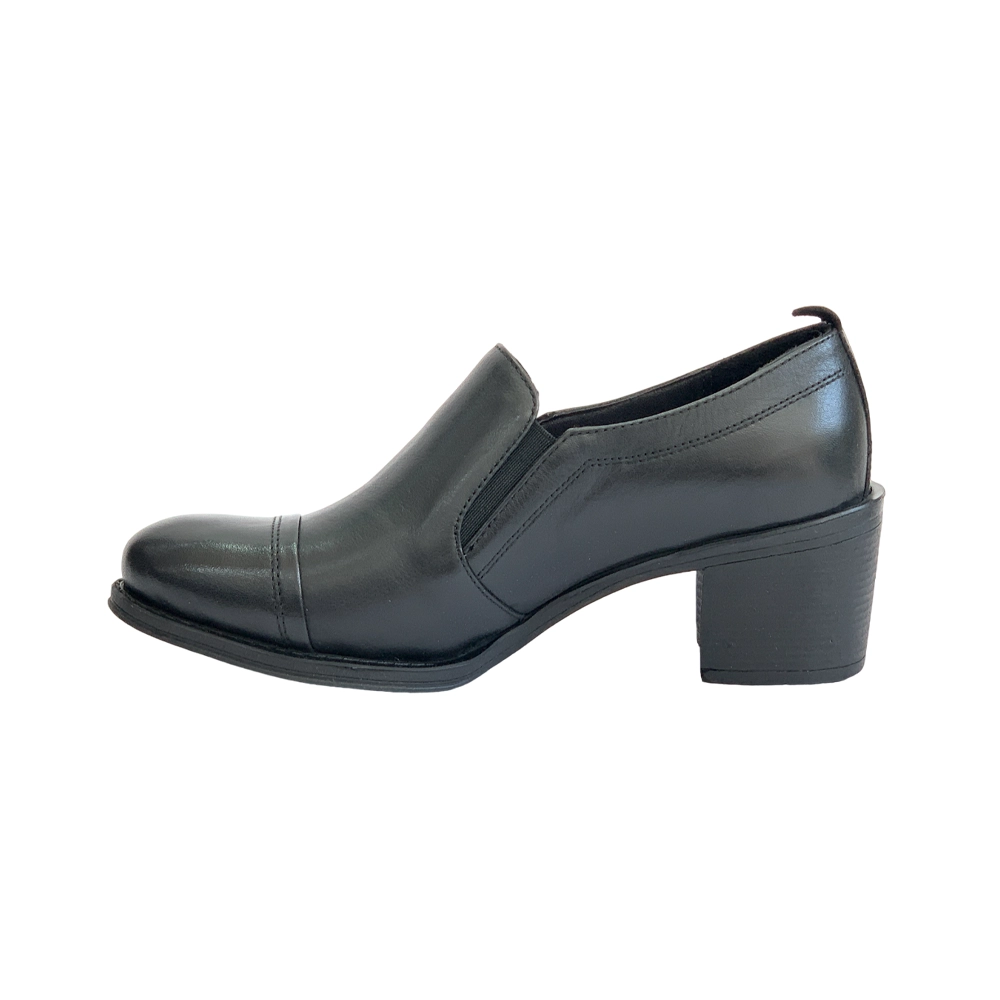 کفش زنانه مجلسی اداری تمام چرم مدل 8036 پاشنه دار برت دار برند دريچی Derici رنگ مشکی